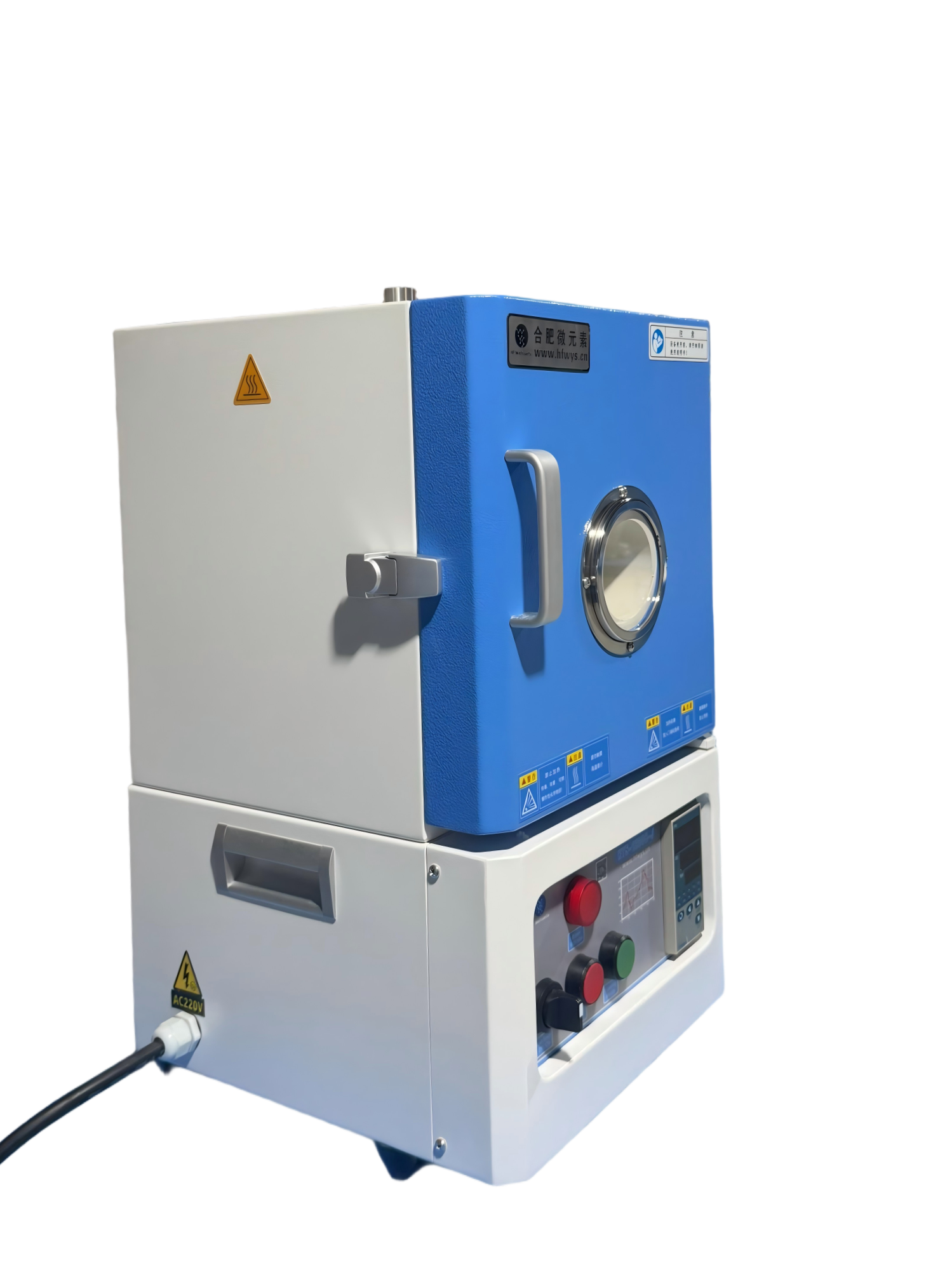 控溫系統:包含一款YD858型溫度控制器;PID控制和自整定調節,智能化30段可編程控制,具有超溫和斷偶報警功能