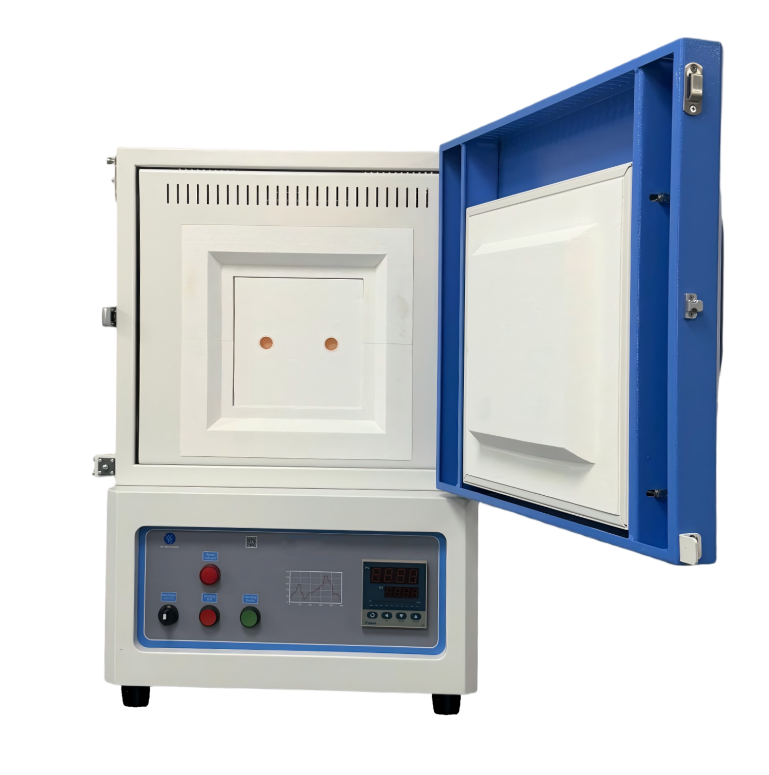 ?爐體結(jié)構(gòu):采用雙層殼體結(jié)構(gòu),并帶有風(fēng)冷系統(tǒng);爐膛采用高純氧化鋁纖維材料,最大程度的減少能量損失;內(nèi)爐膛表面涂有美國進(jìn)口的高溫氧化鋁涂層,可以提高反射率及設(shè)備的加熱效率,同時也可以延長儀器的使用壽命,帶有過熱和斷偶保護(hù);爐膛內(nèi)兩面加熱,加熱速率快,溫場均勻;爐門配有安全限位開關(guān),并且爐門上安裝有一個保護(hù)門閂,防止意外開啟及爆炸。
